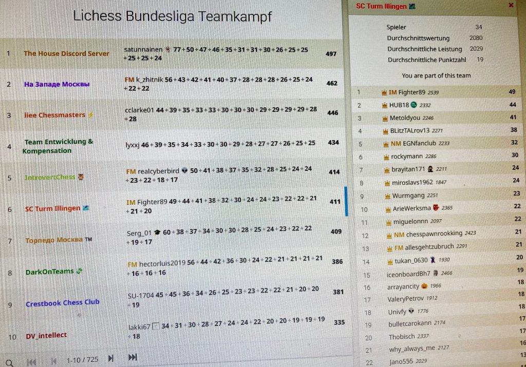 Nicht der befürchtete Abstieg, statt dessen Vorrücken auf Rang 6 im LICHESS-Ranking, nachzulesen unter